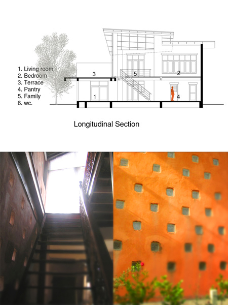 The starting point of the house [บ้านดิน] was initiated by the desire of the owers, Mr. Luise Gracia Ernesto and Arunee Bawornchtuwit, a couple who come from two different cultures and from different parts of the word. They settled down in Nakhon Ratchasima together. The given task is the design of a house with high flexibility of space for undecided future activities in order to support rough ideas as to how the space might be used, for example, to be adapte as a restaurant when the couple wants to retied. Therefore, the architects interpret the use of space by design the ground area of the house as an open space, whereas the living area for the family is placed on the upper floor.