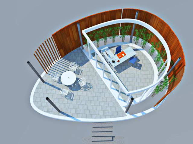 In part of the office, it was supposed to locate along the main road. It is, therefore, the main approach to perceive the farm. The image of the building we got the inspiration from the rice kernel. We named the building ‘Med Khow’. We will also mix a local material like wood, and a modern material like concrete, and to enhance the further with the wooden pattern as the skin. It is becoming a landmark of the farm.