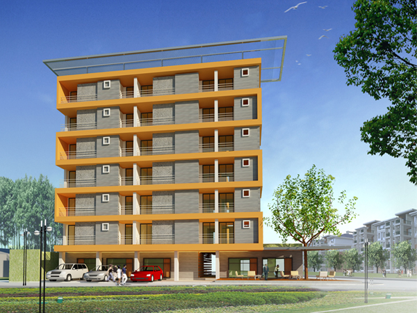 This design is a development composed of so called ‘Max Living’ apartment, which are economical, simple, squarish, quality structures which often have projecting canopies to catch the attention of passers-by.