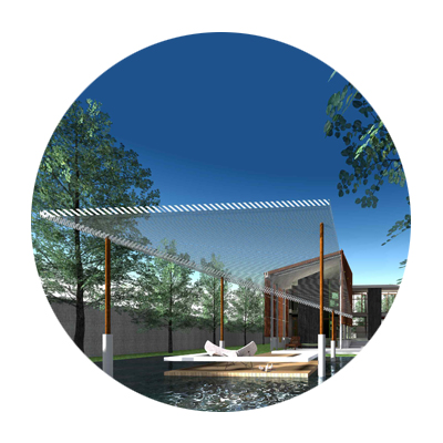 ” The Bridge: สะพานเป็นตัวเชื่อมธรรมชาติเข้าสู่บ้านและ Pavilion ลอยน้ำก็เชื่อมบ้านเข้ากับธรรมชาติ”
