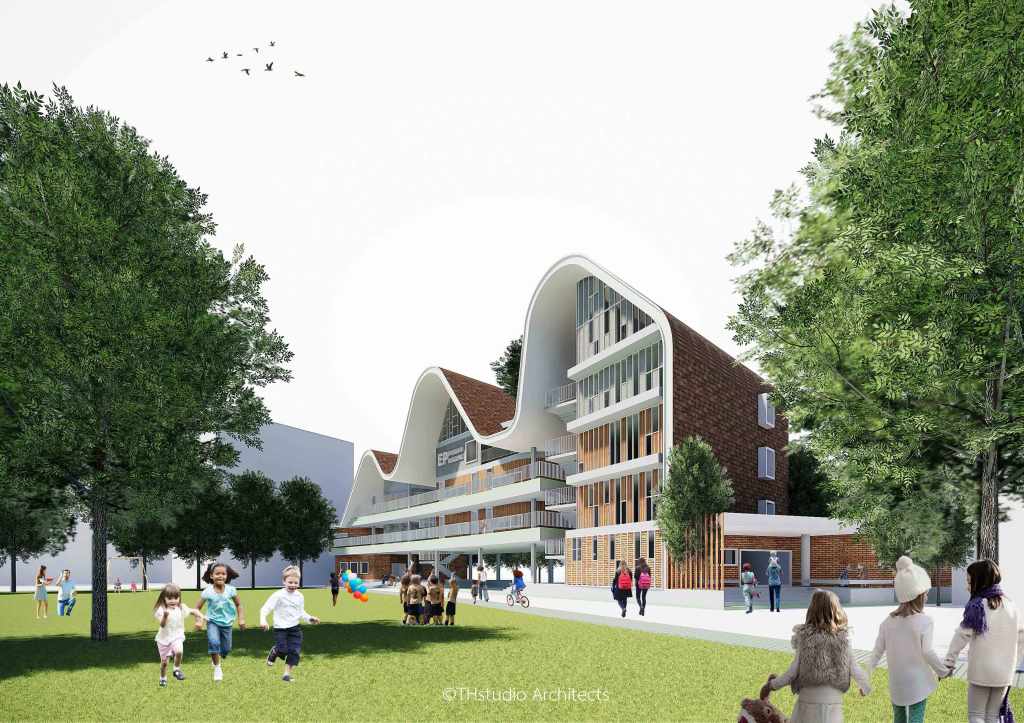 The building consists of the programs for the learning period of primary school. It is a small building that is an extension of the demonstration school of NRRU in Nakhon Ratchasima province, Thailand. The building has 2 and 3 stories flow to each other. There are a big entrance plaza and staircases between two main parts of the building. The position of the main circulations is designed for parents and teachers can see the children, it is a good way of safety.