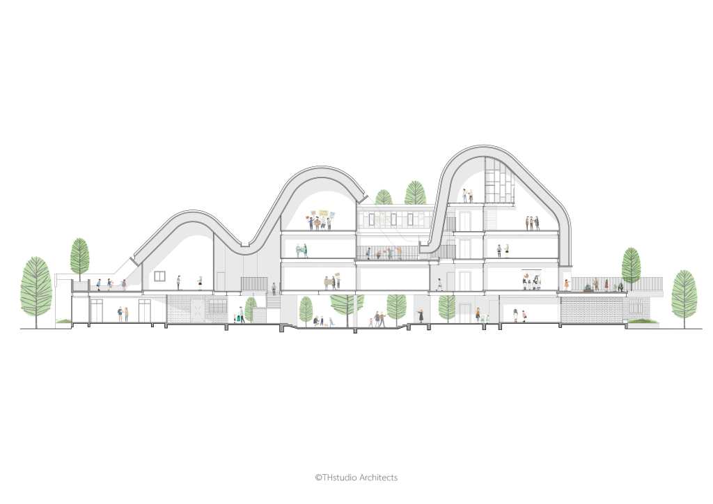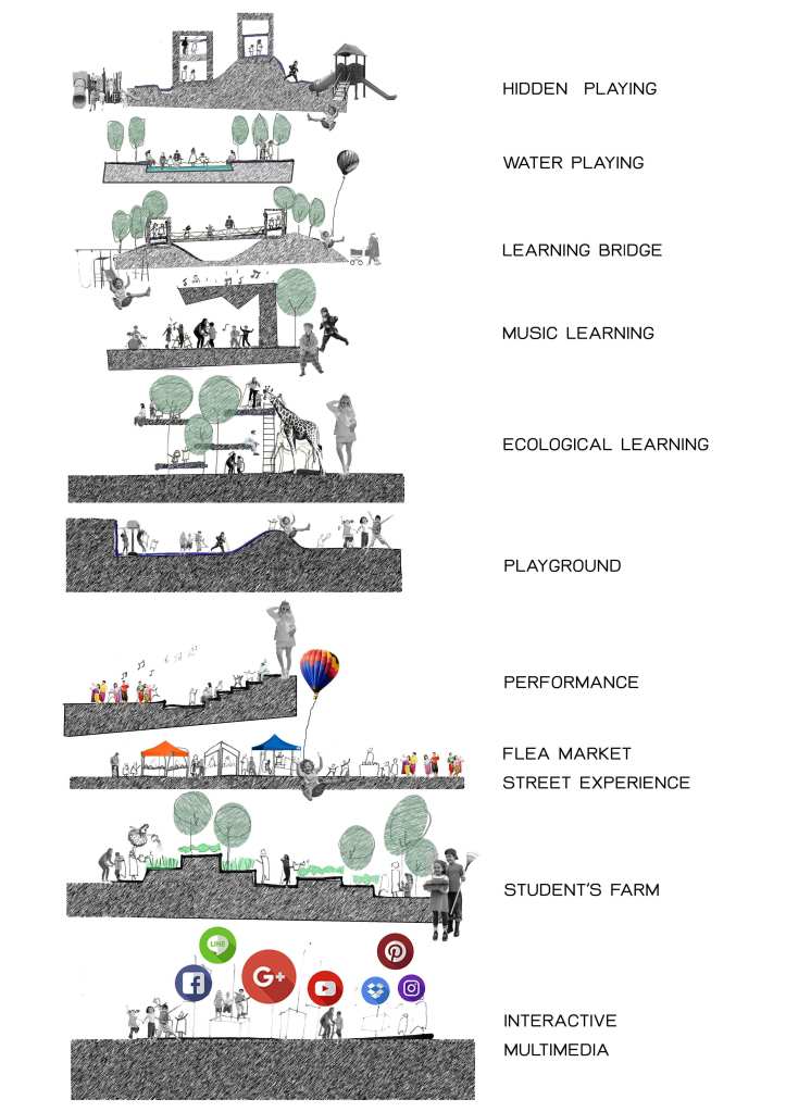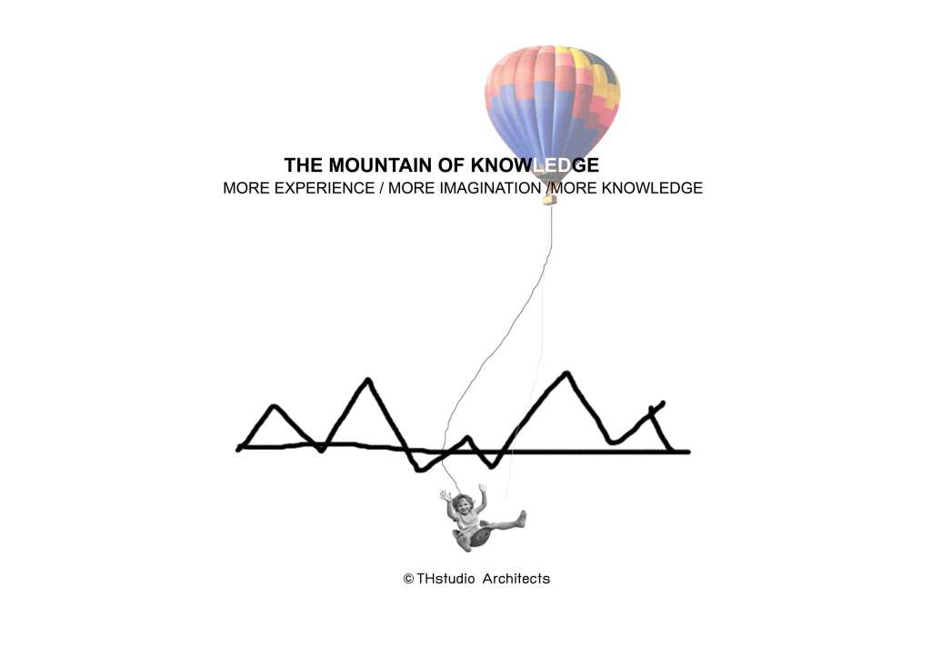 The concept design is ‘The Mountain of Knowledge’ based on promoting learning activity for children. Learning is a never-ending and gradually more and higher like keep walking to the top of the mountain. The aim of the concept is creating More Experience/ More Imagination / More Knowledge that is interpreted into each space and programs. From the concept becomes the building form of the mountain.
