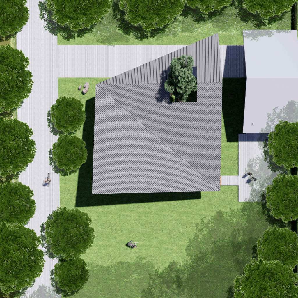 Careful attention was given to the material selection for the house, These materials; bricks,logs, steel, polished concrete, and corrugated metal reflect the natural lighting. The design attempts to create an ensemble of living volumes which engage the natural virtues of the site. The panorama balcony, inward looking house was oblivious to its beautiful woods site.