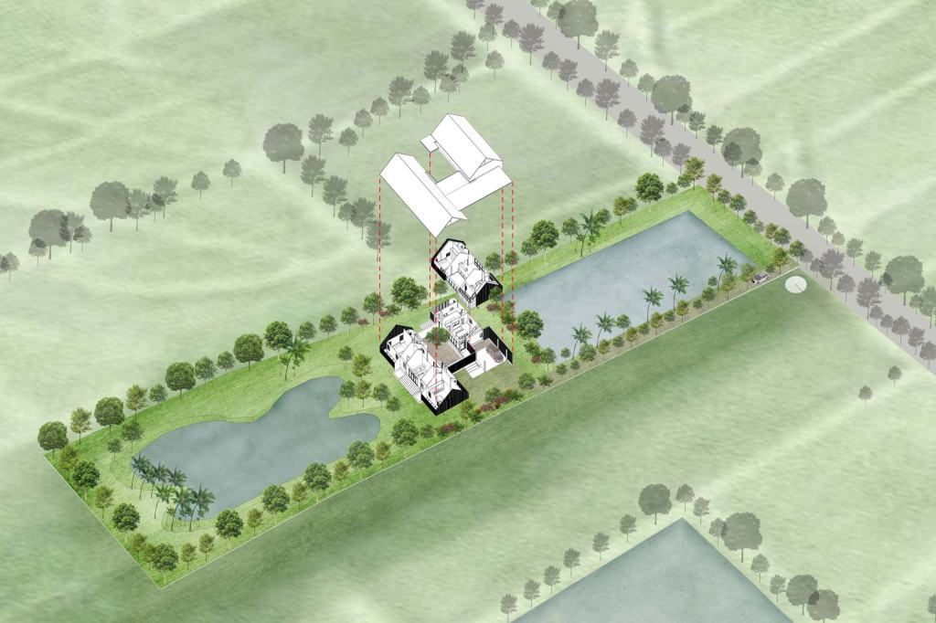 บ้านหลังนี้ลูกสาวสร้างให้คุณพ่อแม่ เพื่อให้เป็นบ้านที่อยู่ร่วมกันระหว่างสมาชิกในครอบครัวที่มีพี่ชายพี่สาว และหลานเป็นครอบครัวใหญ่ที่อยู่ร่วมกันหลายคนเหมือนโครงสร้างของครอบครัวไทยในอดีต การวางผังอาคารจึงใช้แนวคิดความเป็นพื้นถิ่นของบ้านเรือนไทยที่สอดคล้องกับความต้องการและความชอบของรูปแบบการใช้ชีวิตของครอบครัว การวางผังอาคารที่เปิดรับสภาพแวดล้อมโดยรอบที่เป็นไร่นา (Farm)ซึ่งเป็นข้อเด่นของที่ตั้งโครงการ