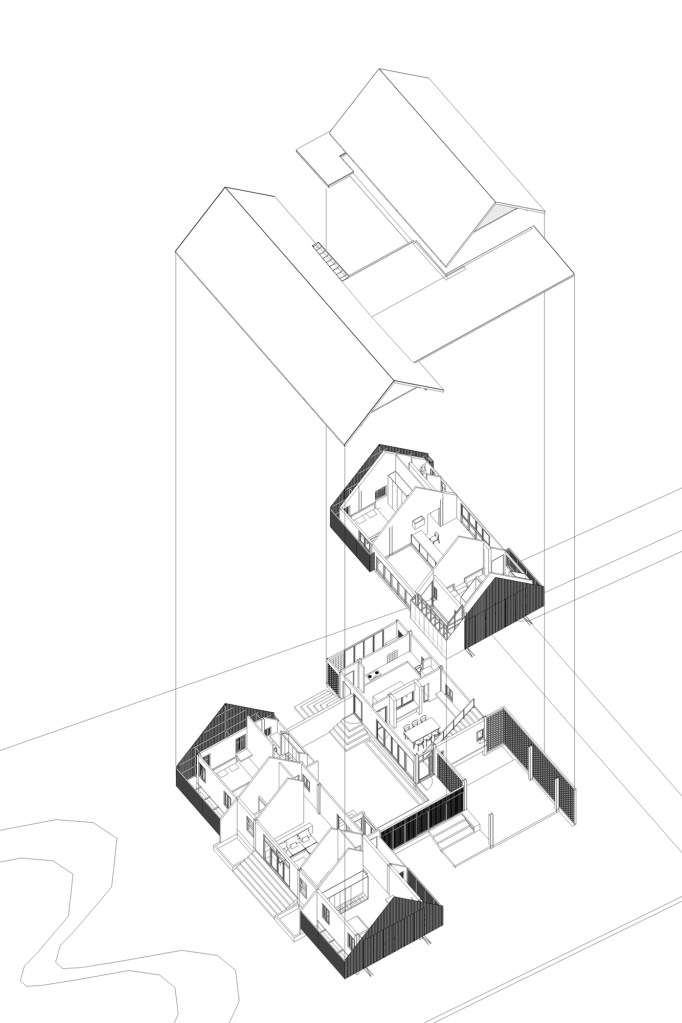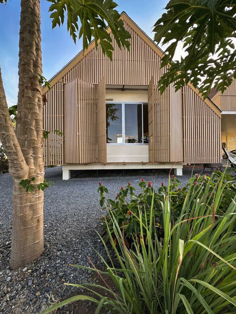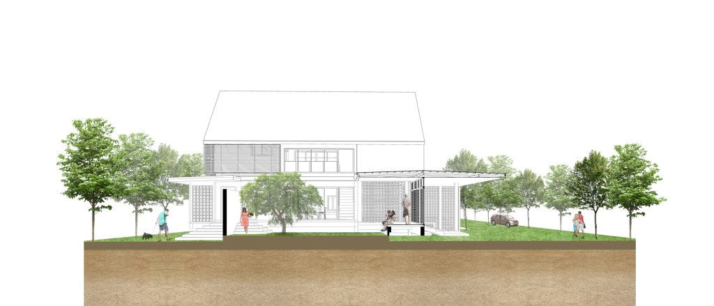รูปแบบบ้านถูกตีความให้มีความร่วมสมัย เลือกใช้หลังคาทรงหน้าจั่วที่ให้ความรู้สึกคุ้นเคยสำหรับการอยู่อาศัย ลดทอนรายละเอียดของบ้านเรือนไทยให้มีความเรียบง่ายทันสมัยขึ้นแต่ยังคงมีกลิ่นอายของความเป็นพื้นถิ่น