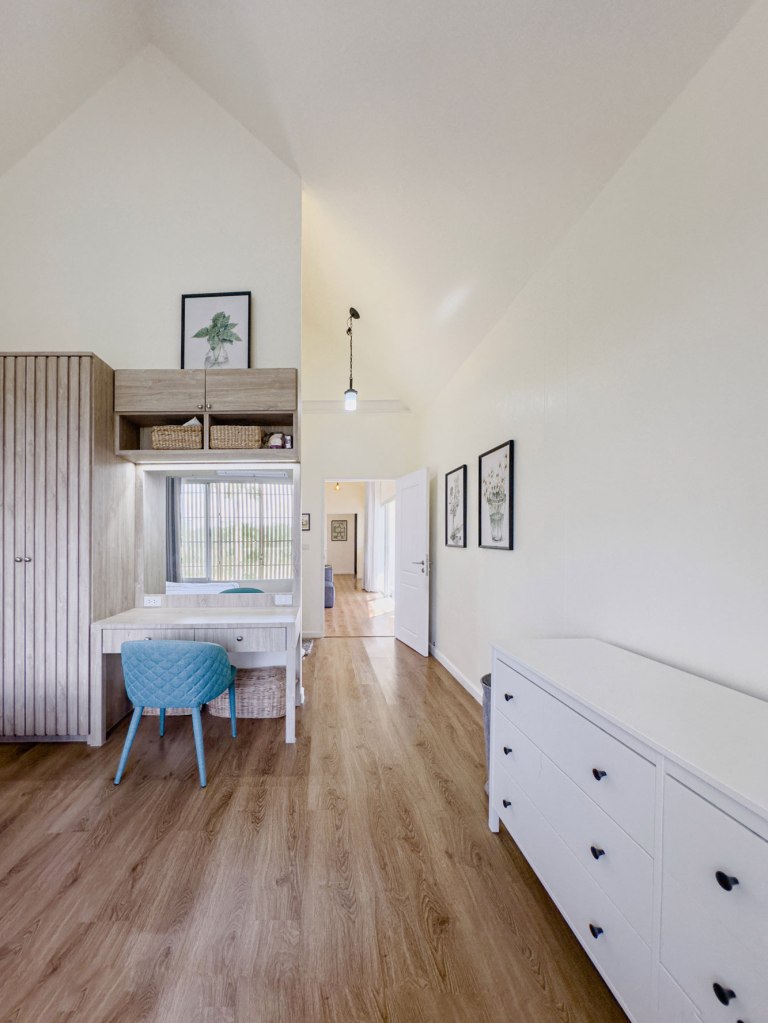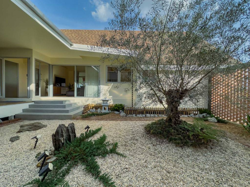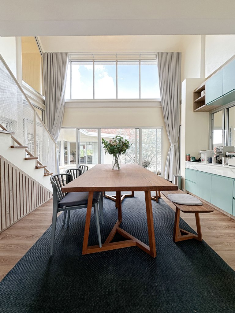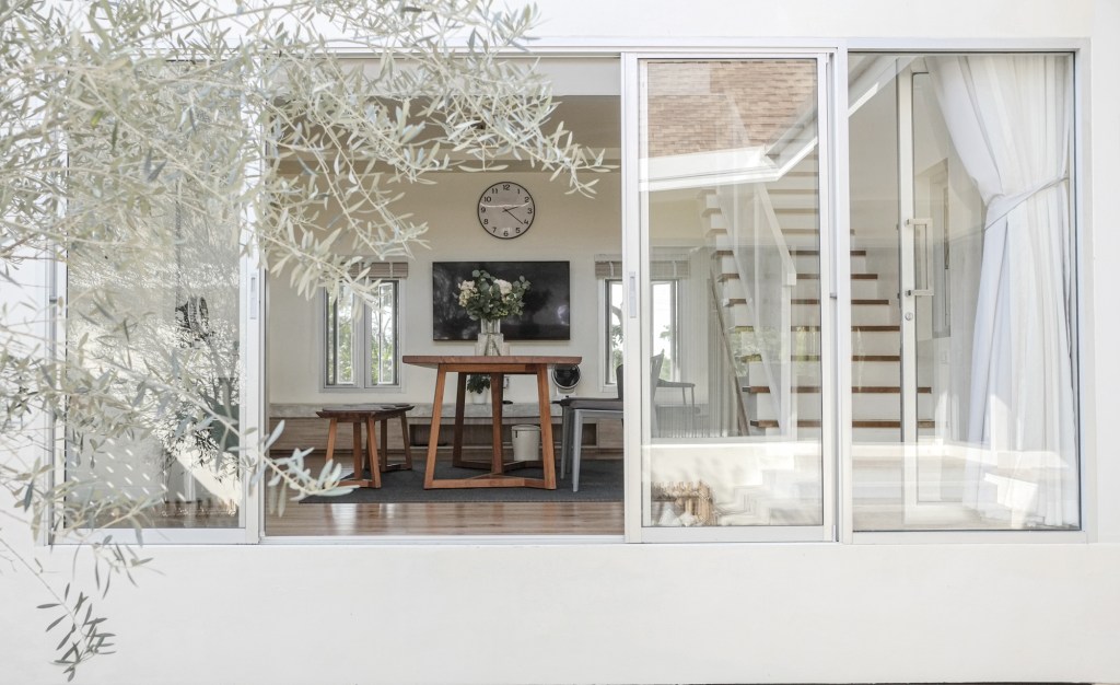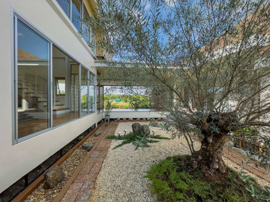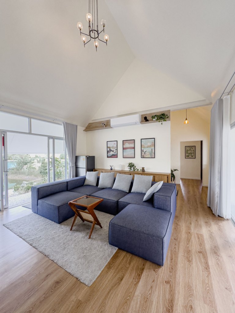 The home’s contemporary interpretation of traditional Thai architecture is clear in its gable roof and simplified, modern detailing. This fusion of old and new creates a timeless and harmonious living space that is both familiar and fresh
