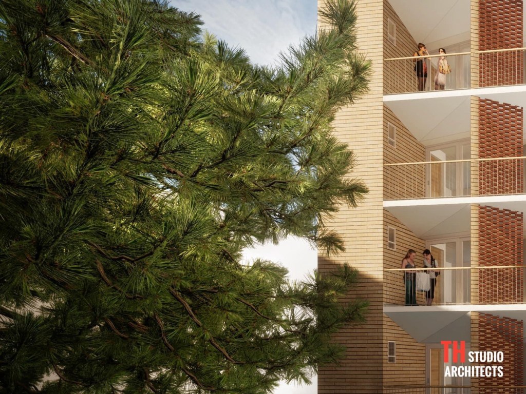 The vertical and horizontal development structures interfere with the private outside spaces, and generate attractive neighborhood and tree balconies.