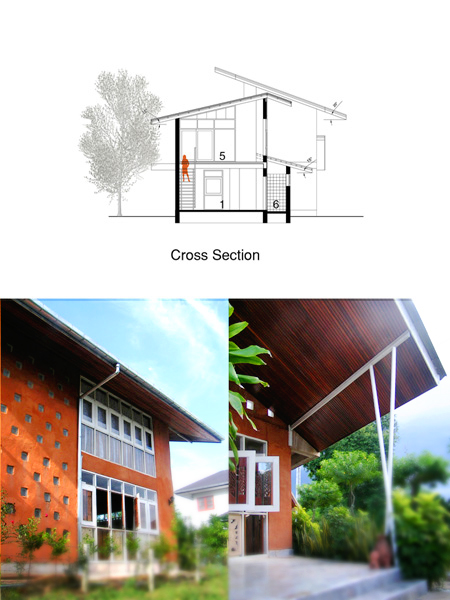 One interesting answer to this question can be had by getting to know a piece of architecture located at the edge of Nakhon Ratchasima province. This orange –mass earth shelter can be found out of the city. The house is topped with a lean-to shape roof that is outstandingly superimposing, making the house greatly distinctive after the city’s urban environment.
