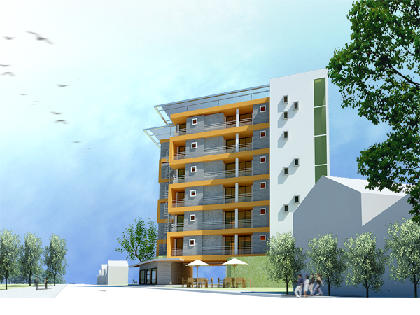 and 7 retail shops are is extremely long and narrow shape. The building is in an architecturally very different neighborhood but supports the project. Including to all these conditions, narrow plot, budget construction, and many living spaces, the building, therefore, was designed under a concept of low cost but high benefits. In part of functions are completely full on the site, the façade is notable for regular urban-style on the street, more irregularly shaped building to the rear.